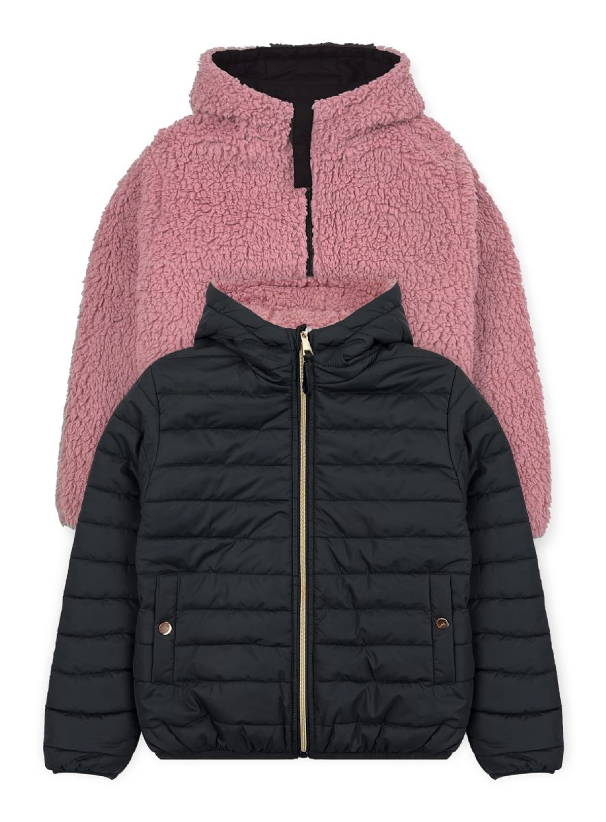 Girls Reversible Jacket With Sherpa Lining In Black And Pink Assorted Sizes 7-14 Case(24 Piece)
