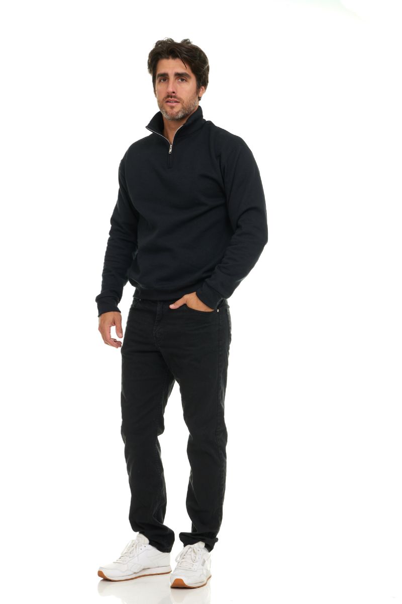 Mens Cotton Fleece Line Quarter Zip Sweat Shirt Black Size Small Case(120 Piece)