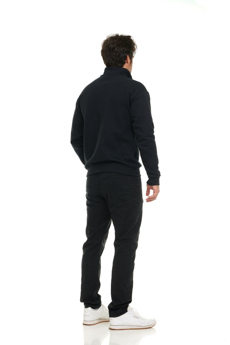 Mens Cotton Fleece Line Quarter Zip Sweat Shirt Black Size XL Case(48 Piece)
