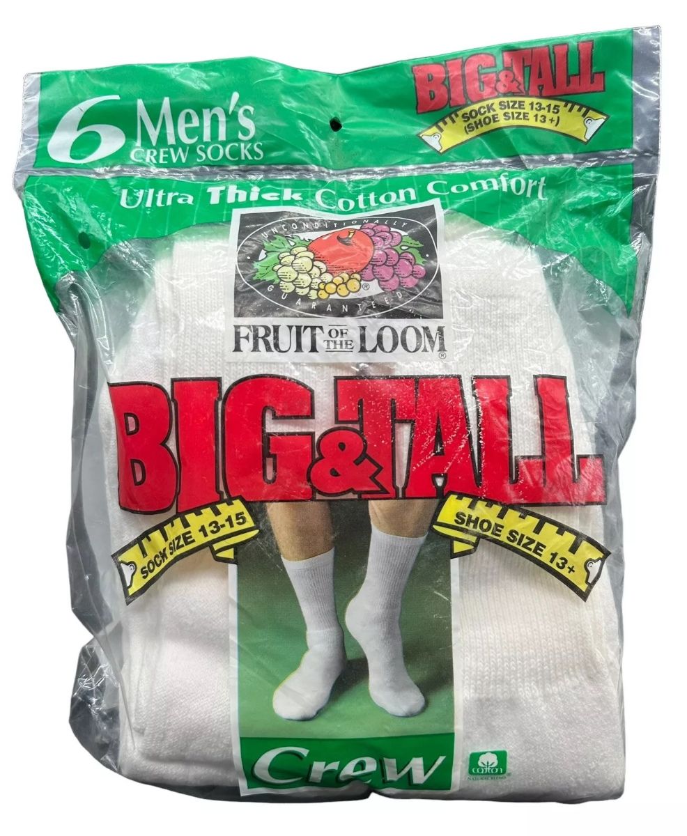These classic Fruit of the Loom King Size Men's White Crew Socks offer the perfect blend of comfort and durability. Designed for larger feet, these socks feature a reinforced heel and toe for added longevity. The soft, breathable fabric keeps your feet cool and dry, while the comfortable fit ensures all-day comfort.