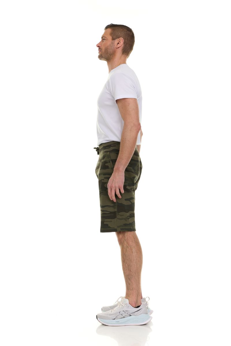 Mens Green Camo Fleece Shorts With Side Pockets Size M Case(24 Piece)