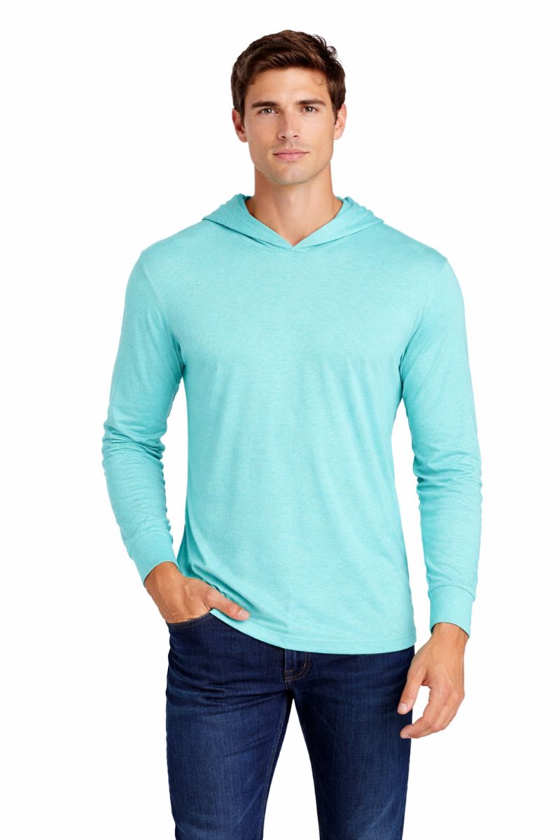 Mens Unisex Triblend Hooded Long Sleeve Pullover T-Shirt Size Large Tahiti Blue Case(2 Piece)