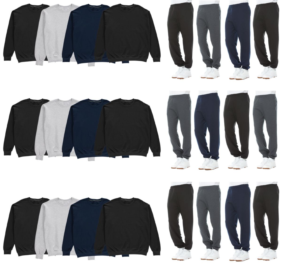 Mix And Match Mens Fleece Jogger Pants And Crew Neck Sweatshirts Assorted Colors Size Medium Case(24 Piece)