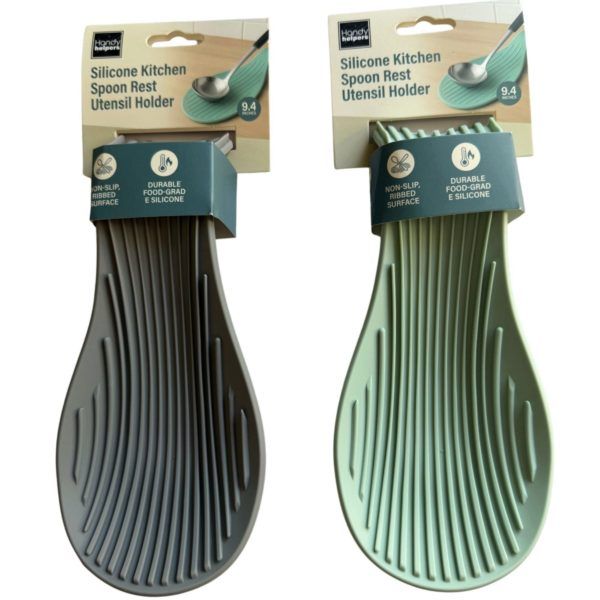 This Silicone Kitchen Spoon Rest Utensil Holder offers a practical solution for keeping countertops clean and organized during meal prep. Made from food-grade silicone, it withstands heat up to 42 degrees Fahrenheit and measures 4.10" wide, 1" deep, and 9" long. The ribbed surface provides a non-slip base for holding cooking tools such as spoons, spatulas, or tongs, while raised edges help contain drips and spills. Its durable, easy-to-clean design makes it an essential addition to any kitchen setup, ideal for use near stovetops, prep stations, or counters.,Silicone Kitchen Spoon Rest Utensil Holder,