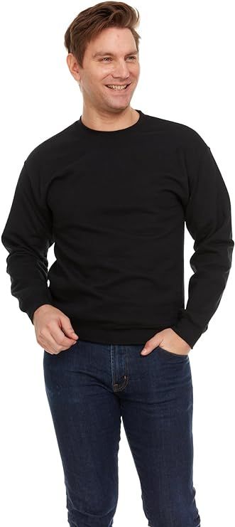 Unisex Fleece Line Cotton Crew Neck Sweat Shirt Black Size L Case(72 Piece)