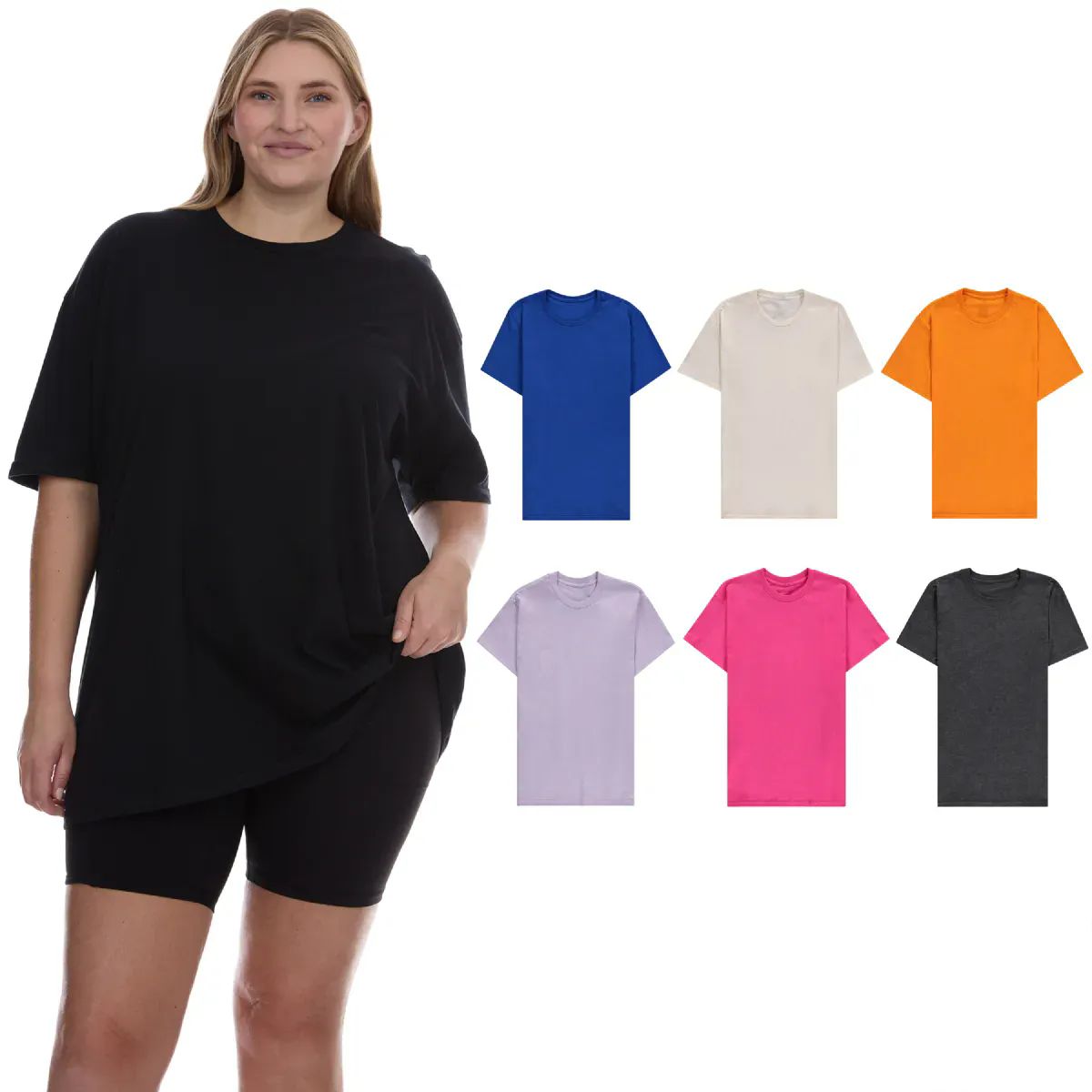 Womens Oversized Cotton Crew Neck Short Sleeve T-Shirts assorted colors , 5X-Large Case(48 Piece)